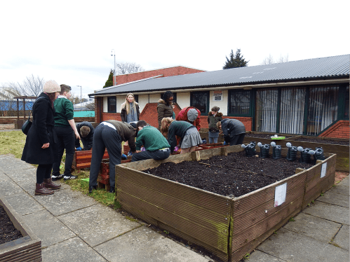 Potato planting by school pupils » Spuds for Buddies St James pupils planting